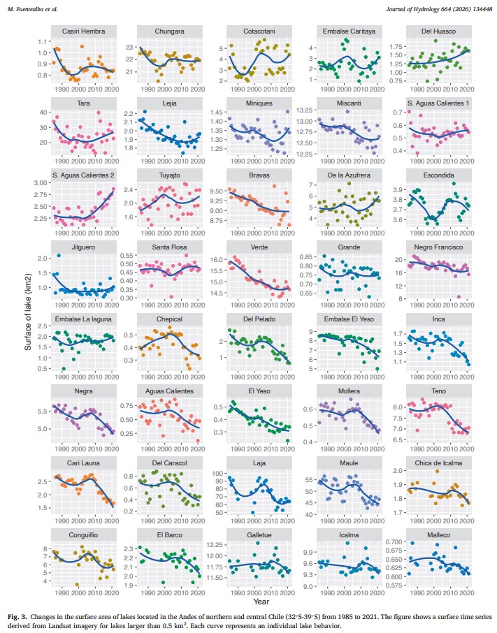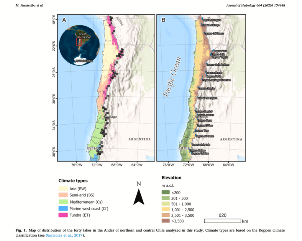 Lee la publicación completa: Lake water response to the recent megadrought in the Andes of northern and central Chile (18◦S-39◦S)” Journal of Hydrology. (https://doi.org/10.1016/j.jhydrol.2025.134448)